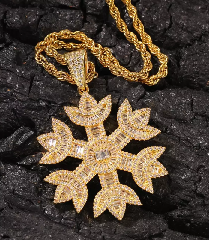 Tags: Snowflake snow gold plated full studded cz diamond pendant