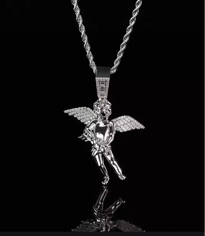 Bling Iced Out Cupid Cubic Mens Gold Plated Angel Pendant
