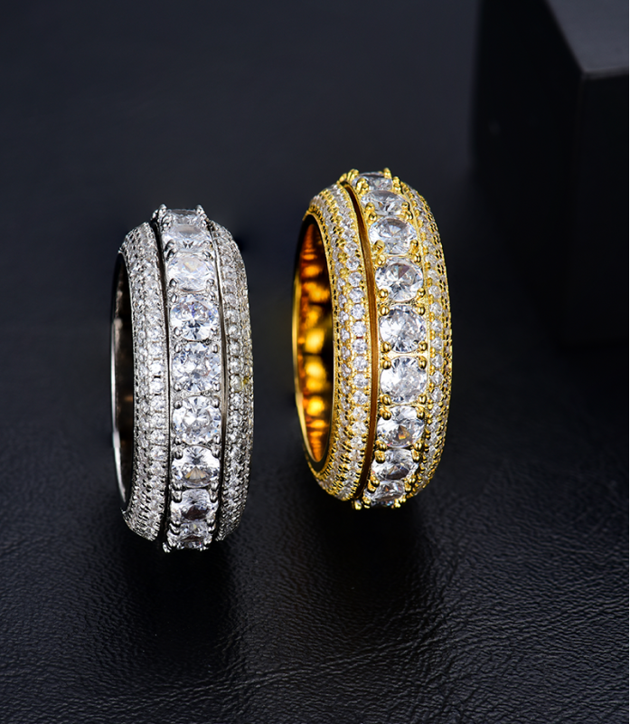 Tags: luxury gold plated full studded cz diamond rotating ring